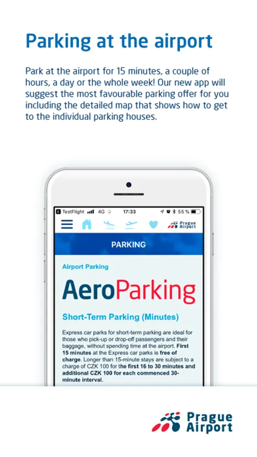 The mobile application will also provide you with information about the parking options available directly at Václav Havel Airport Prague, ways of check-in and additional services, including a complete list of the shops and restaurants you can visit at the airport. You will also find information about the airport lounges and VIP services.
