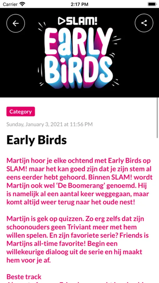 Met de SLAM! app luister je altijd en overal naar de lekkerste dance & popmuziek, check je de laatste nieuwtjes & video’s, kan je meedoen aan te gekke acties en stuur je gratis berichtjes naar de SLAM! studio.
