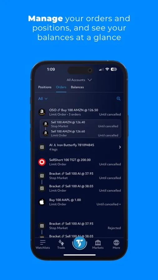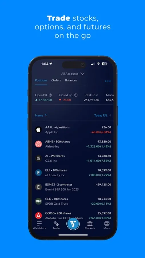 • Track and analyze your positions, orders, and balances on the go for stocks, options, futures, and crypto