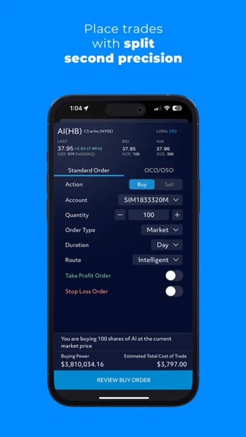 Backed by over 40 years of expertise, TradeStation aims to deliver the ultimate trading experience with an intuitive, data-driven trading app that empowers users to trade stocks, ETFs, options, futures, and crypto on the go. The all-in-one TradeStation mobile app gives you the tools to execute your strategies, right from the palm of your hand.