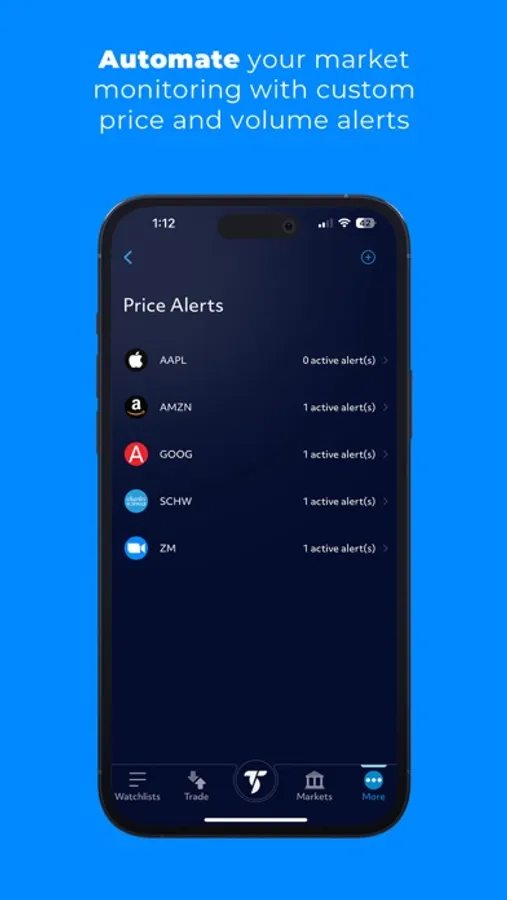 • Get real-time streaming quotes and alerts on price and volume swings on stocks, options, futures, and crypto