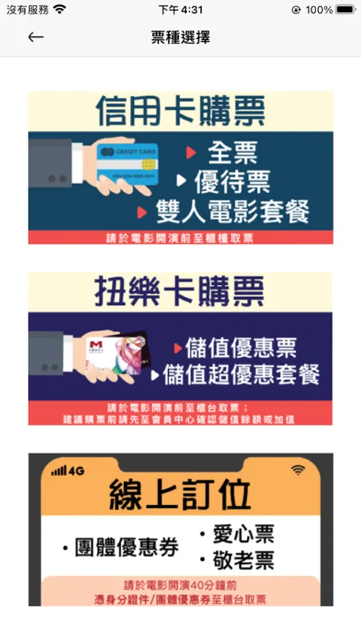 6. 隨時享受快速訂票的便捷服務、可使用美麗新影城團體電影優惠券訂票,更可線上快速使用信用卡支付訂票。