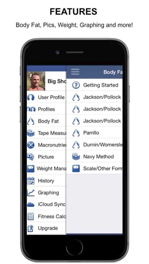 Body Tracker gives you a choice of several methods to calculate your body fat percentage.
