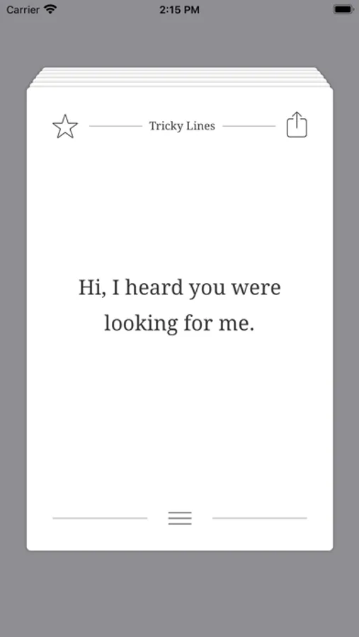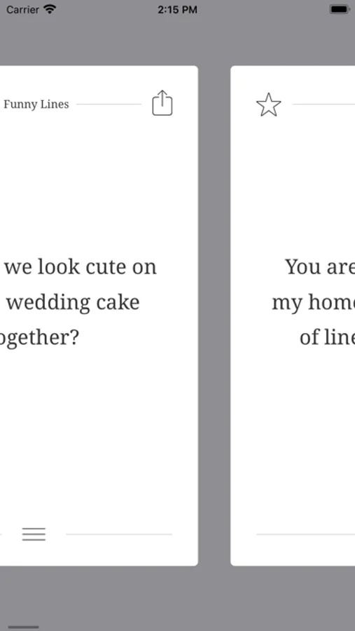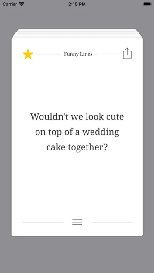 You can mark any pickup line as a favorite by tapping the star in the upper left corner. In the main menu, you can tap "Only show favorites" to only view your most favorite content.