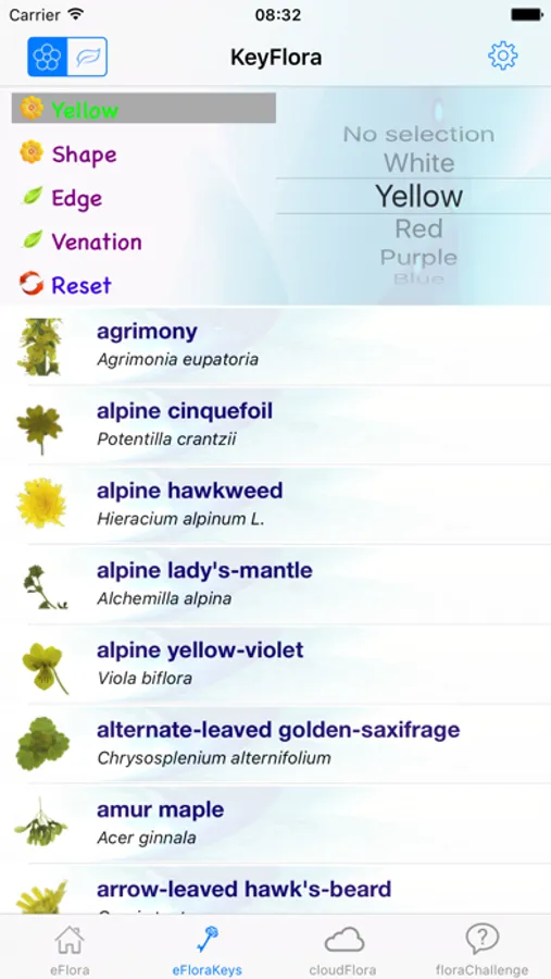 eFlora is a flora app with more than 500 Nordic species. Each plant has between two and five high quality photos, showing different parts of the plant. The unique key system allows the user to filter plants by flower colour, flower shape, leaf edge and leaf venation.