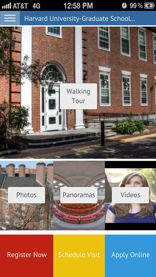 Thinking of attending the Harvard Graduate School of Education? Prospective students can navigate the campus and the city of Cambridge, MA and learn about our unique programs and culture through a self-guided tour. Whether at home or on campus our interactive student guide will accompany you as you explore our university's offerings through the use of the GPS-enabled campus map, student videos and photos.