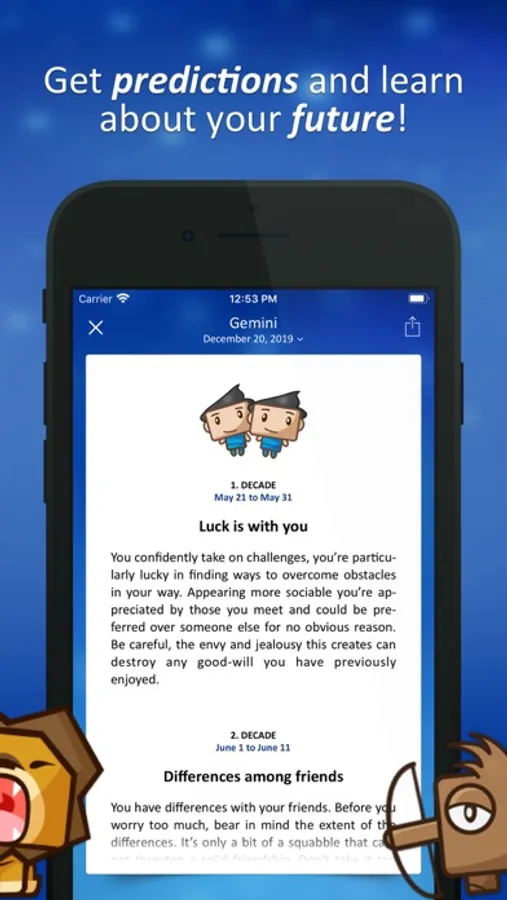 Best daily Horoscope App ever for astrology lovers. The app comes with lovely designed zodiac signs and accurate predictions about Job, Money, Health and Love / Dating.