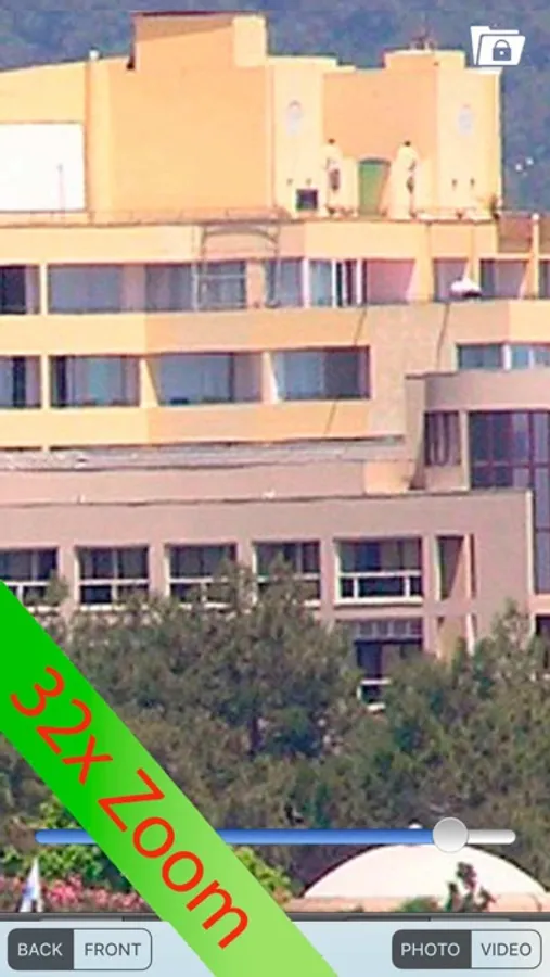 Now you can easily use super-digital-zoom (32x) using your iDevice. Just pinch to zoom in or out. Easily take a photo of the zoomed picture.