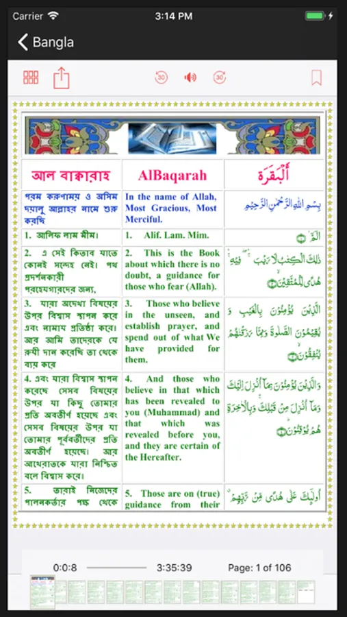 In this current version you will be able to read, recite in five languages based on multiple type of fonts and hear multiple reciters.