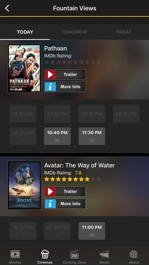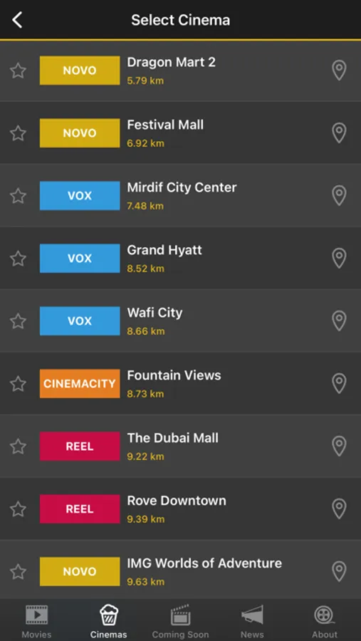 - Find your nearest cinemas easily by selecting "Cinemas Near Me" options.