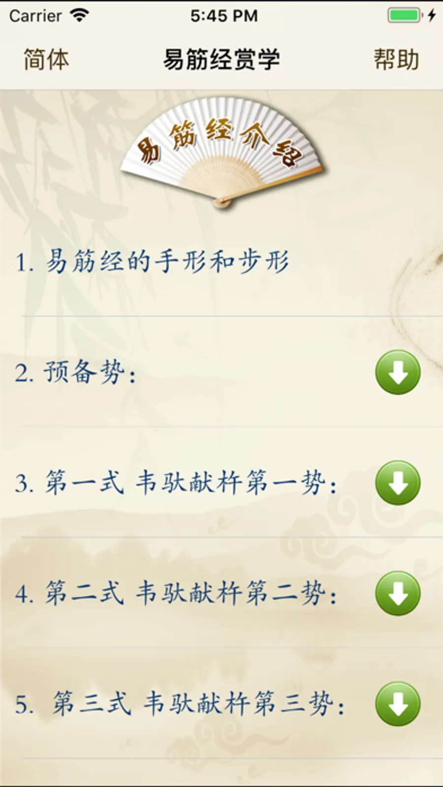 产品示范教学视频介绍了《易筋经》功法简介、功法演示、功法教学(动作要点、错误与纠正、功法作用)等,并配有《易筋经》相关介绍(功法介绍、风格特点、习练要领)及功法讲解的文字说明,便于理解。