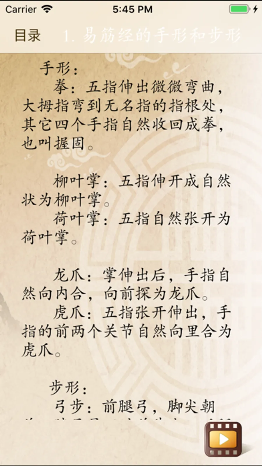 1. 易筋经的手形和步形