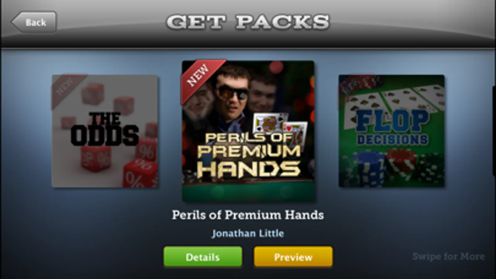 * Poker hands are packaged into Hand-Packs™, covering various aspects of Hold'em tournament strategies from the fundamentals to advanced professional play.