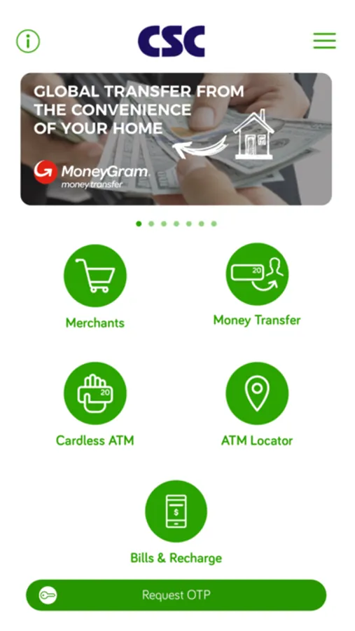 -Allows you to request a One-Time-Password (OTP) via the application itself or via SMS