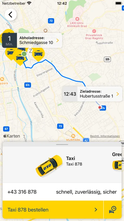Bestellen Sie Ihr Taxi in Graz und Umgebung mit zwei Klicks zu Ihrem Standort!