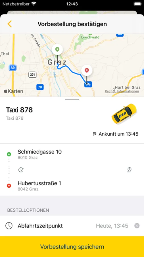 Auch Vorbestellungen für eine Fahrt zu einem späteren Zeitpunkt werden unterstützt.