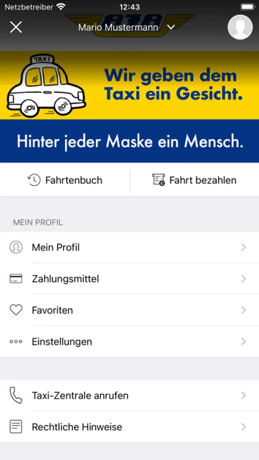 Die Anfahrt Ihres Taxis wird angezeigt. Bei Angabe einer Zieladresse sind auch