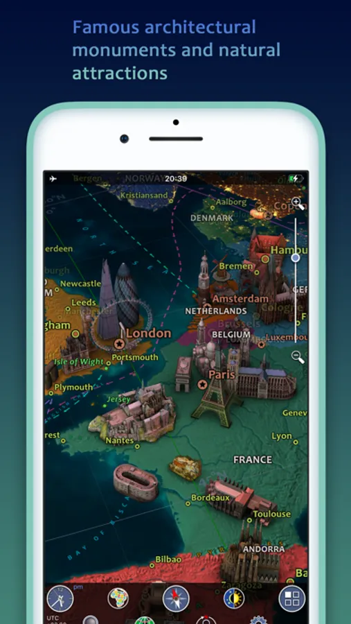 This interactive 3D globe features wonders of the world, political and physical maps, and weather. Discover a lot of fascinating facts and useful information about our planet! Original and colorful graphics, user-friendly interface and accurate information – this is what Earth 3D - World Atlas is all about!