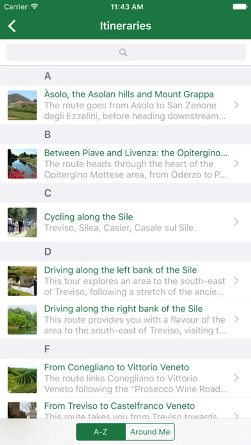 13 tours by foot or by car through Treviso and and its surroundings to discover beautiful places. The landscape is ever changing, encompassing the harmony of the lowlands, the heights of the Alpine foothills, the gently rolling hills, the woods of Montello, and the large and small cities: Asolo, Castelfranco Veneto, Conegliano, Vittorio Veneto. Each tour with photos, an important selection of points of interest geolocalized on the map