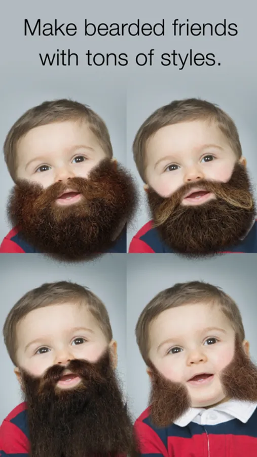 Fun for both the bearded and the beardless alike! From a five-o-clock shadow to a full-on face forest, find the perfect level of whiskers for your face. Not sure what style? Try on tons of realistic, "follicle-accurate" beard styles. Want to match your hair color? Tweak the beard color for every style.