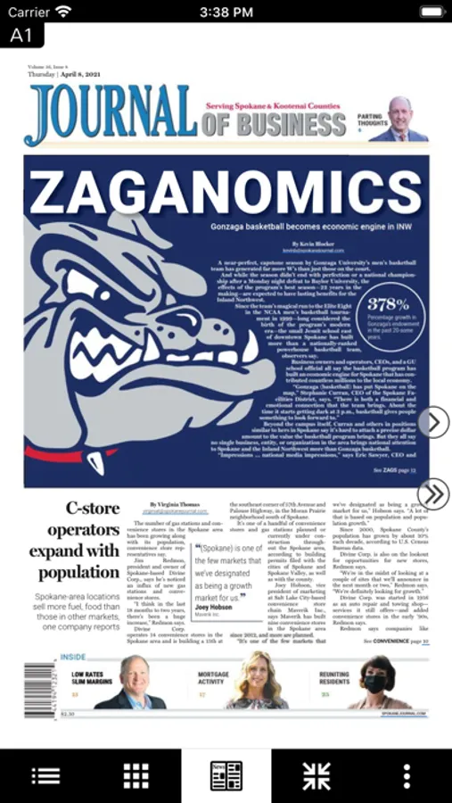 The Journal of Business electronic edition app provides readers with an exact replica of the Journal’s bi-weekly print edition on their mobile device. Readers get every edition of the Journal’s award-winning business coverage of Greater Spokane and the Inland Northwest, including breaking news, trends, analysis, and focused looks at the industry sectors that drive this region, just as it appears in the print newspaper.