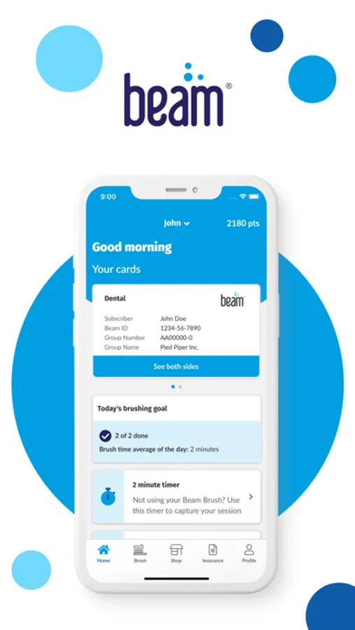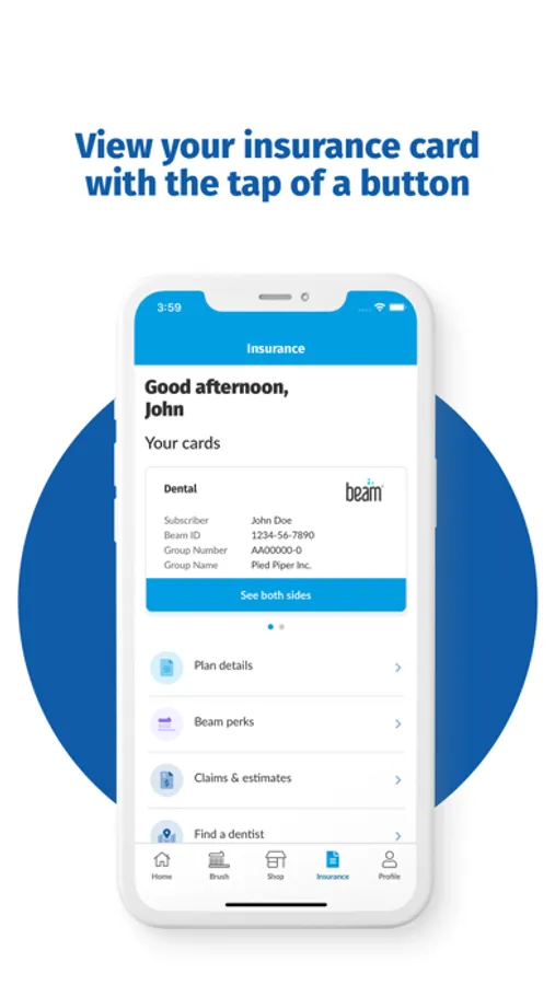 The Beam app provides easy access to benefits information including insurance cards, plan details, and claims status. It also syncs with the Beam Brush to display brushing history, allow users to adjust brush settings, and check the status of their Beam Perks.