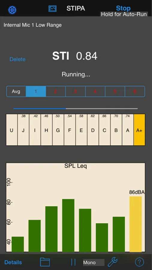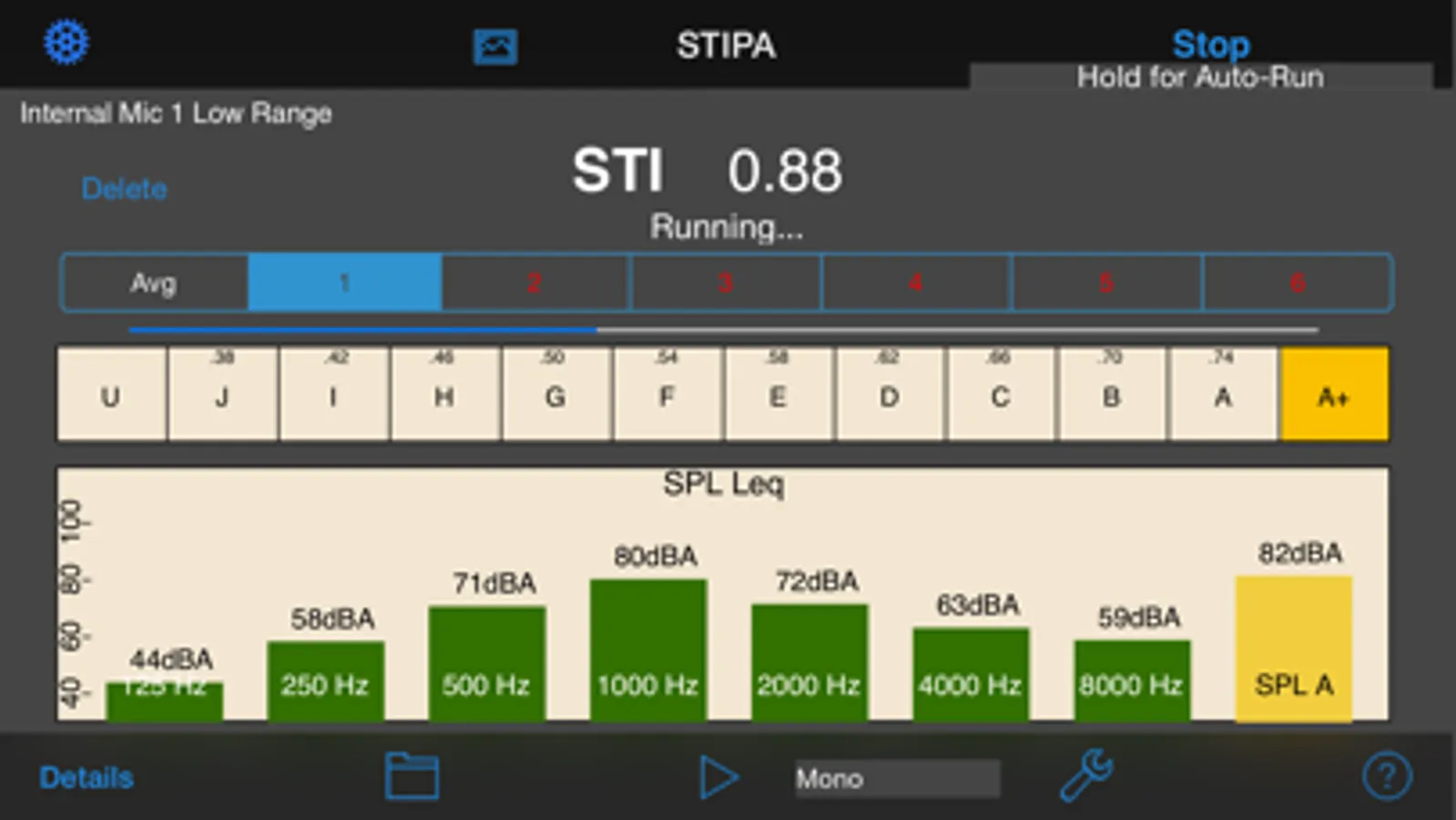 Also, you can upgrade STIPA to STIPA Pro from the setup screen of the app, to add octave band LEQ analysis, full detail reporting, and save / recall and export of results.(See "Optional" images). Either way, you are getting the same powerful and accurate speech intelligibility test.
