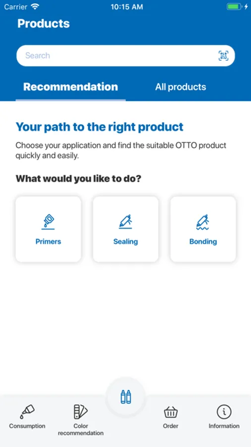 Colour recommendation: For a uniform appearance, the colour of the silicone sealant must always match the grout being used. The app now makes it possible to select your hard joint mortar (tile adhesive) in order to get a suitable colour recommendation for the OTTO sealant.