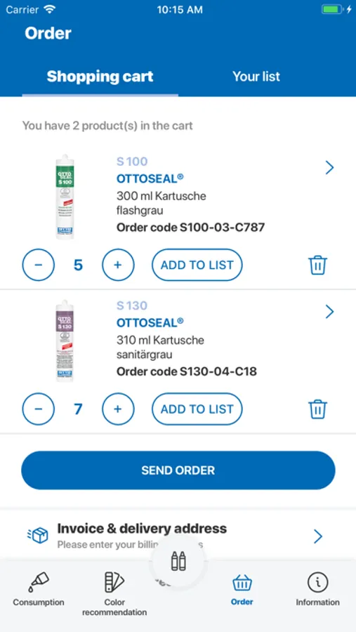 Ordering: Existing OTTO customers can order directly using the app. Personal lists will contain convenient summaries of the desired products and can be managed for subsequent orders. Upon demand, the ordered goods can also be delivered directly to the construction site.