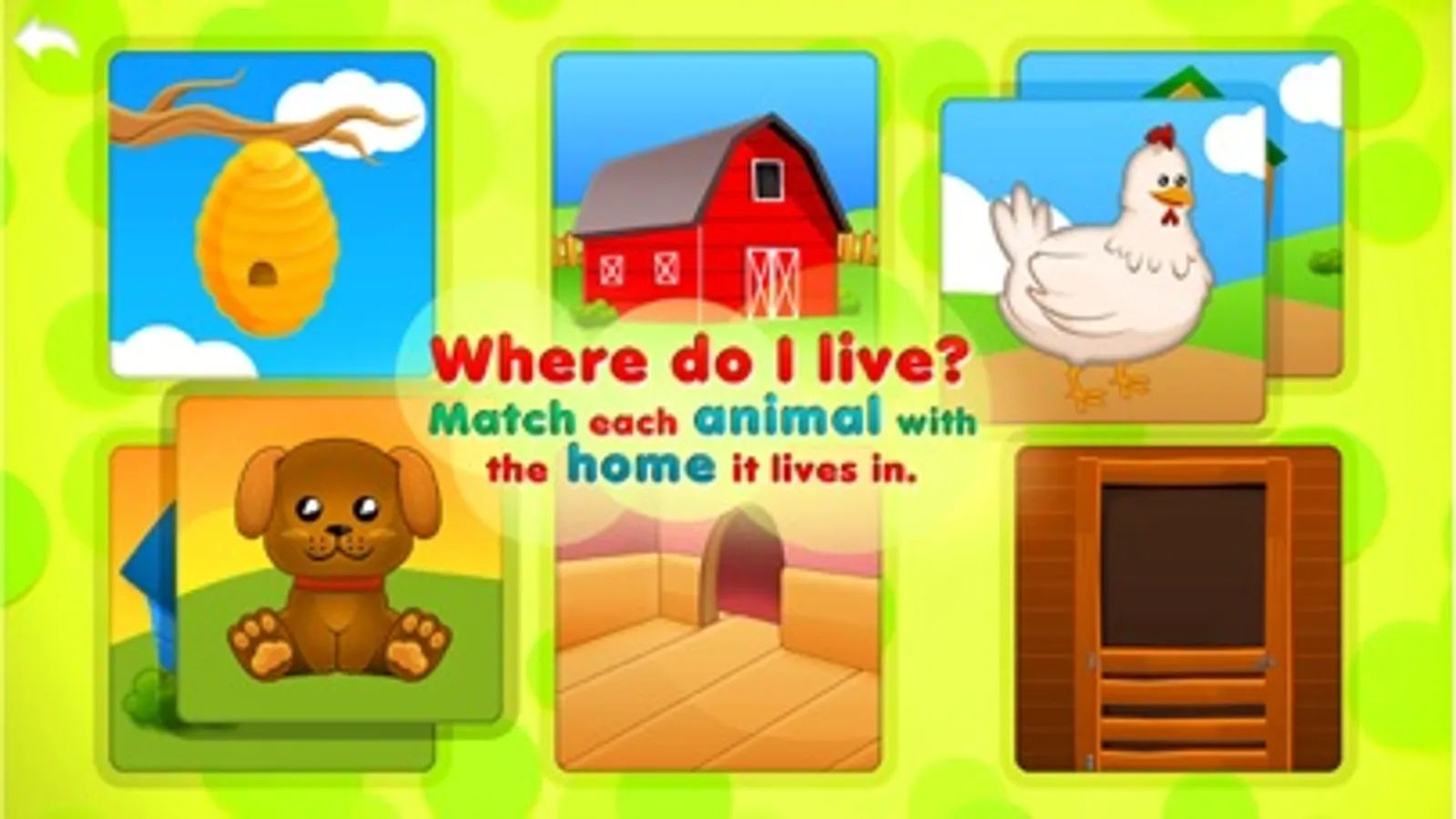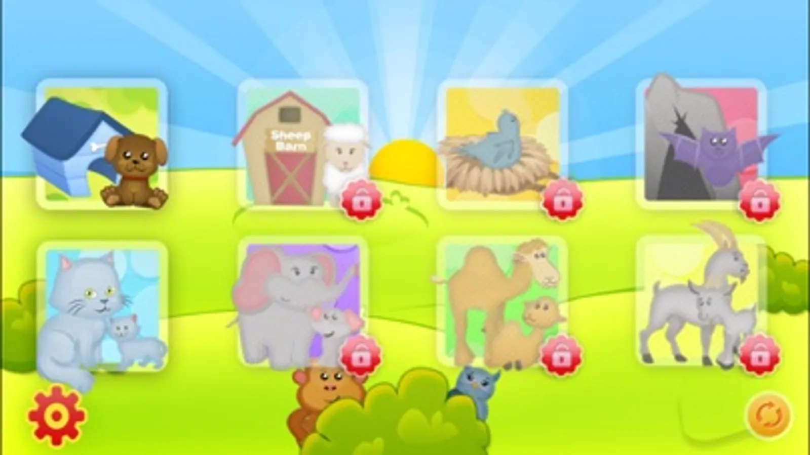 Kids match the pieces correctly on the puzzle to hear the word of an animal and it’s match (home mother) duck – pond, owlet – owl, horse – stable, tadpole – frog, cub – lion, camel – desert and much more!