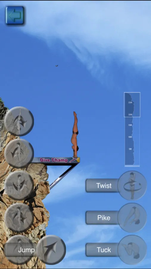 The game is an evolution of DiveChamp, our other simulation of the more classic indoor acrobatic diving. It features just as realistic graphics captured from experienced divers, the signature ultra-smooth animation and responsive controls for optimal gameplay following closely the beautiful and dangerous sport of cliff diving!