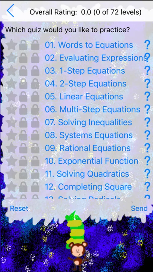 Bounce the monkey up the steps as high as you can. Answer questions correctly to keep going.