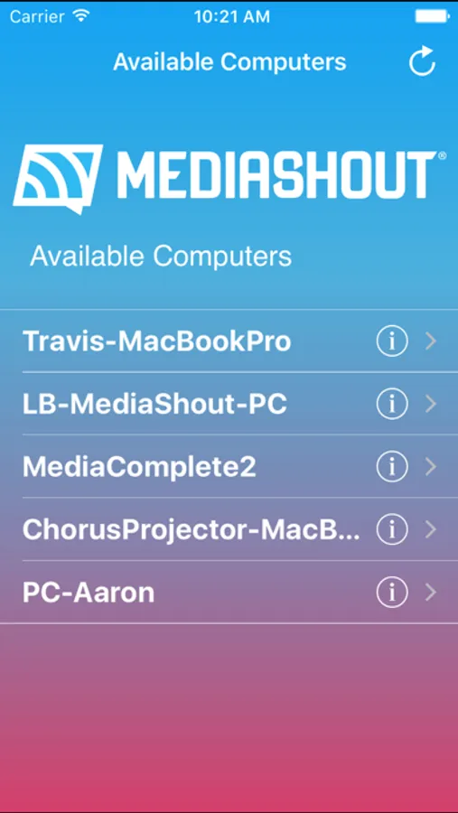 MediaShout Remote provides control and preview of MediaShout presentations over your Wi-Fi network from your iPhone, iPad or iPod Touch.