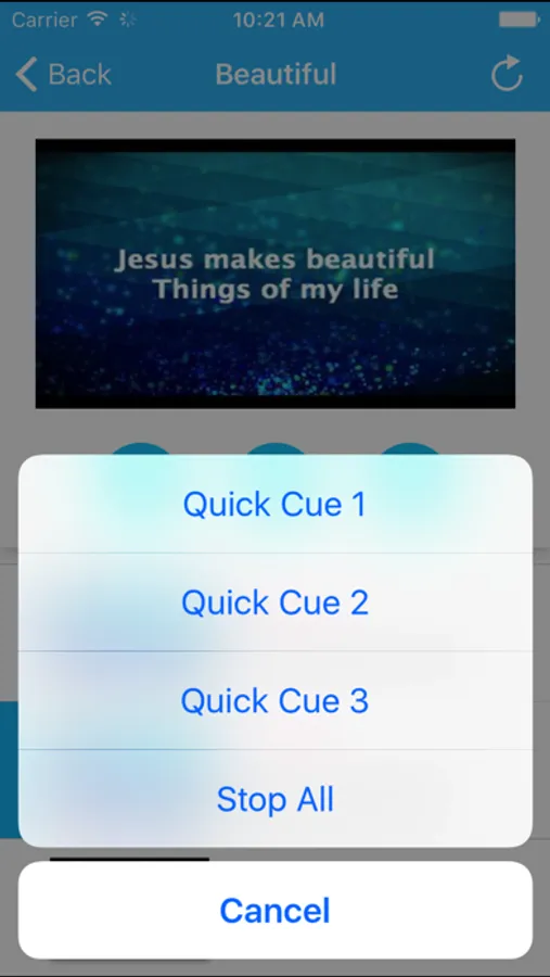 - Landscape view provides a Preview or Presentation mode depending on whether you prefer to swipe and play Cues directly to the screen, or browse thumbnails before double-tapping to play.