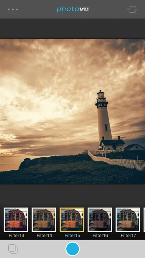PhotoVu is a live photo filter app that enables to get high-resolution professional photos. Using dramatic filter effects through the 1st filters and the 2nd filters, you can be a professional photographer.