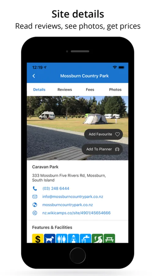 WikiCamps makes it incredible easy to find sites. You can use the site list to quickly find sites near you, or use the map screen to view sites on the map. The site details page shows icons representing features the site has to offer, such as toilets, showers, power, pet friendly, and so many more! It also shows the name, address, contact details, a user rating, user reviews, prices, photos and even a handy 7 day weather forecast.