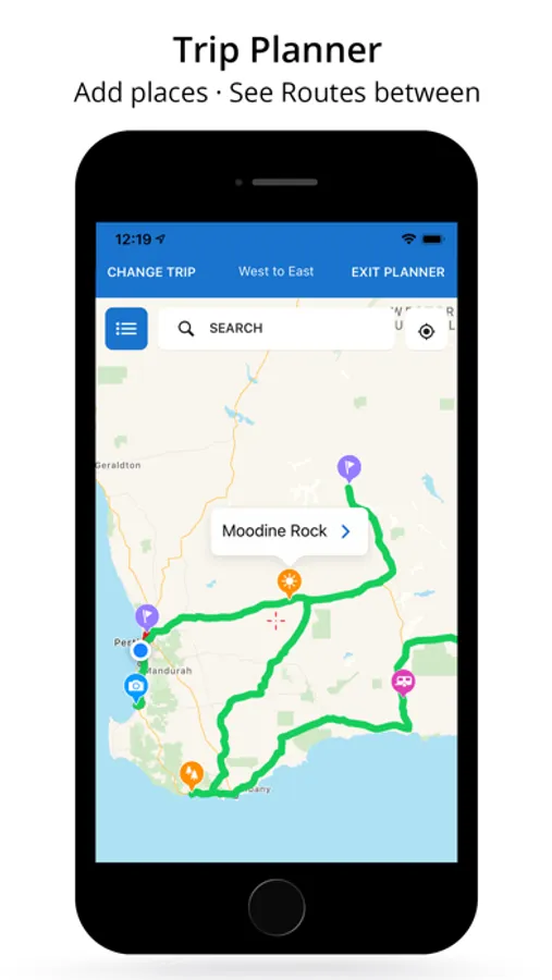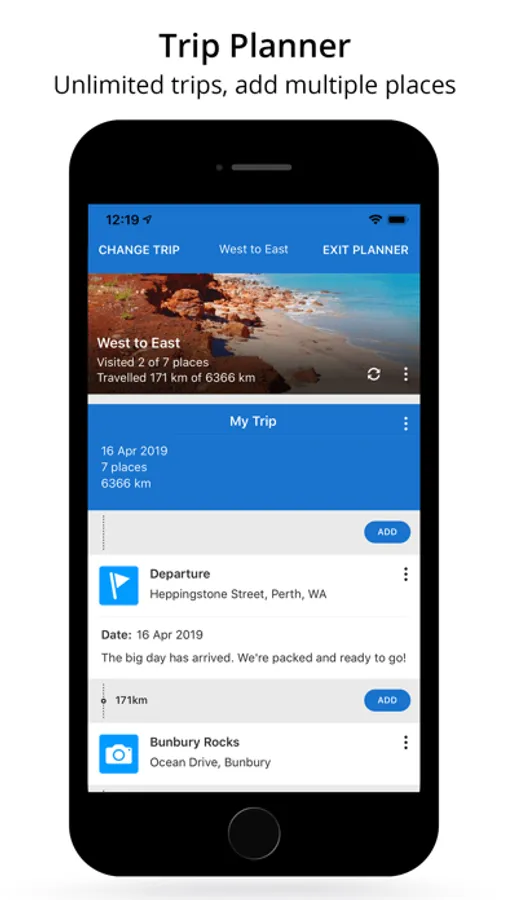 Create and plan multiple road trips using the built-in trip planner. Add sites to your trip, update your progress as you drive, then share your trip with friends and family.