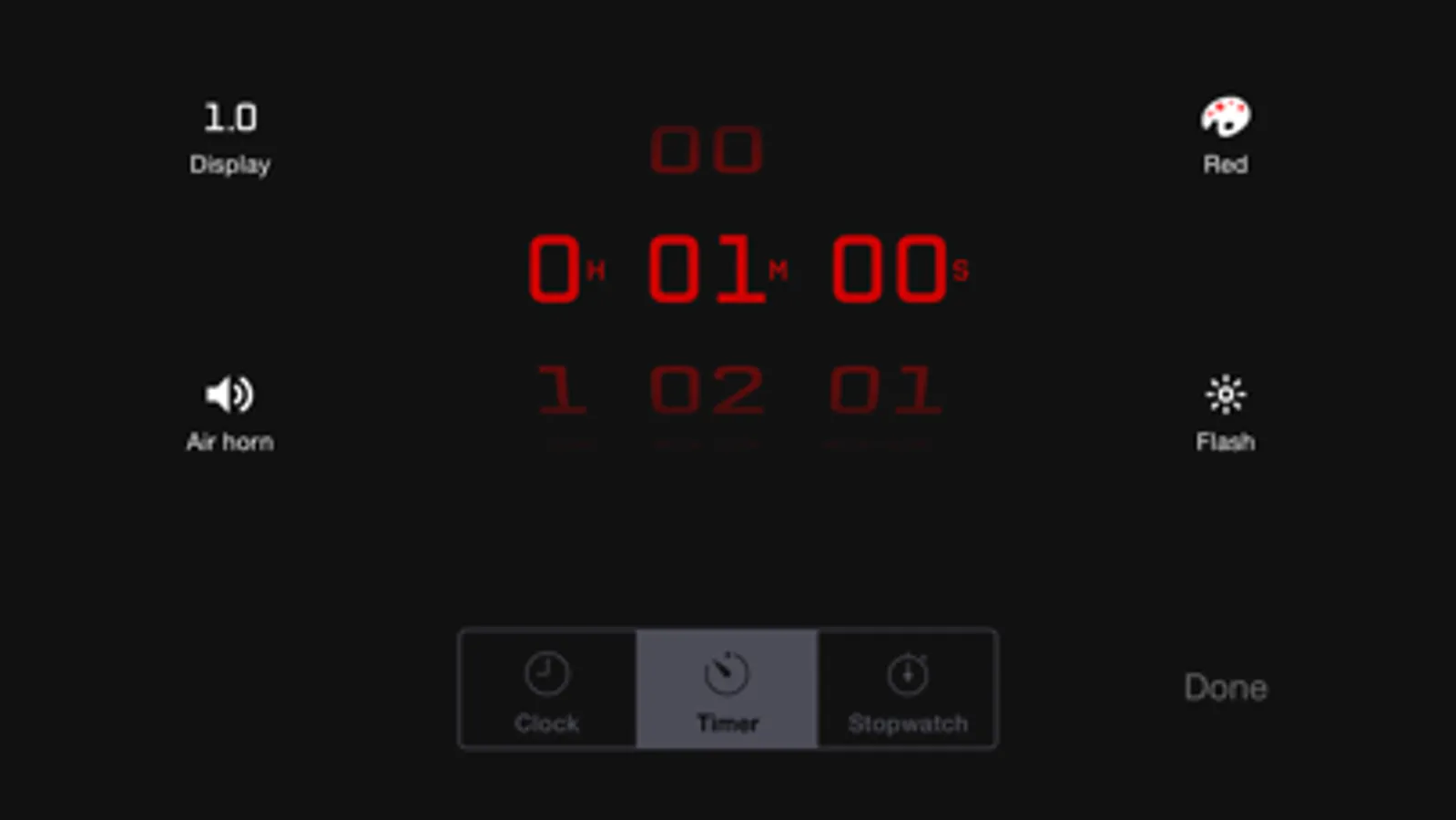 + Three modes - stopwatch, timer, or clock