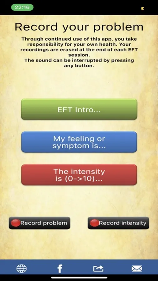 ** Record your own problem and intensity, and get support with guided tapping. ** Your own words will be mixed with mine and you will be easily guided through the processes. **
