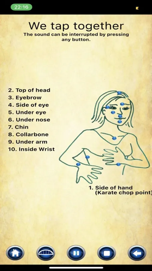 This is a simple, easy to follow eft tapping app. Sara has a very soothing voice as she guides the user through a basic EFT session. The format is quickly learned.