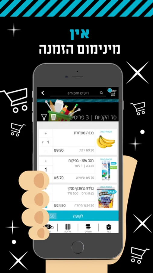 am:pm מאפשרת לכם להזמין ישירות מהסלולרי ולקבל את המשלוח תוך שעתיים! בלבד! מרגע ההזמנה