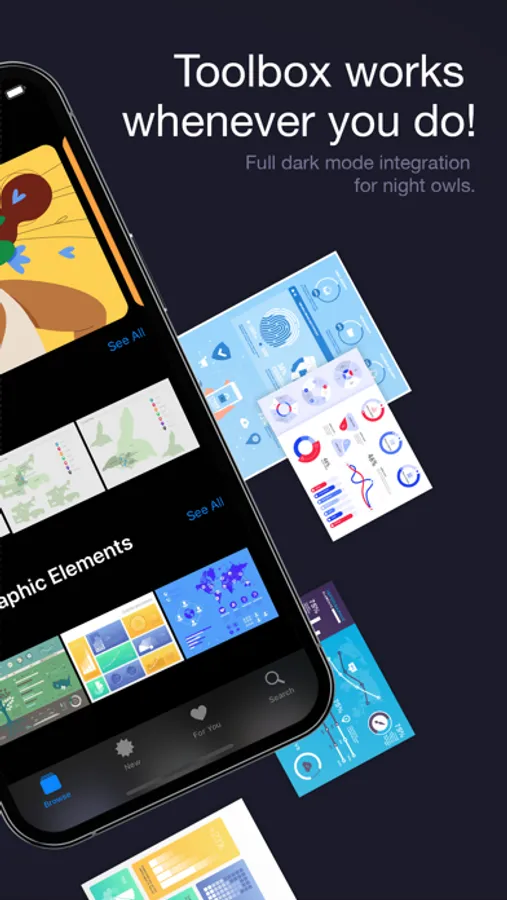 Elevate your productivity with Jumsoft's Toolbox for Keynote – the ultimate companion to Apple Keynote. With an expansive assortment of thousands of customizable items, offering unparalleled quality and limitless potential for creative combinations, you'll uncover an extensive resource hub. From meticulously crafted themes and layouts to awe-inspiring infographics and even the minutest slide components like clipart and bullet points, the app accommodates all occasions.