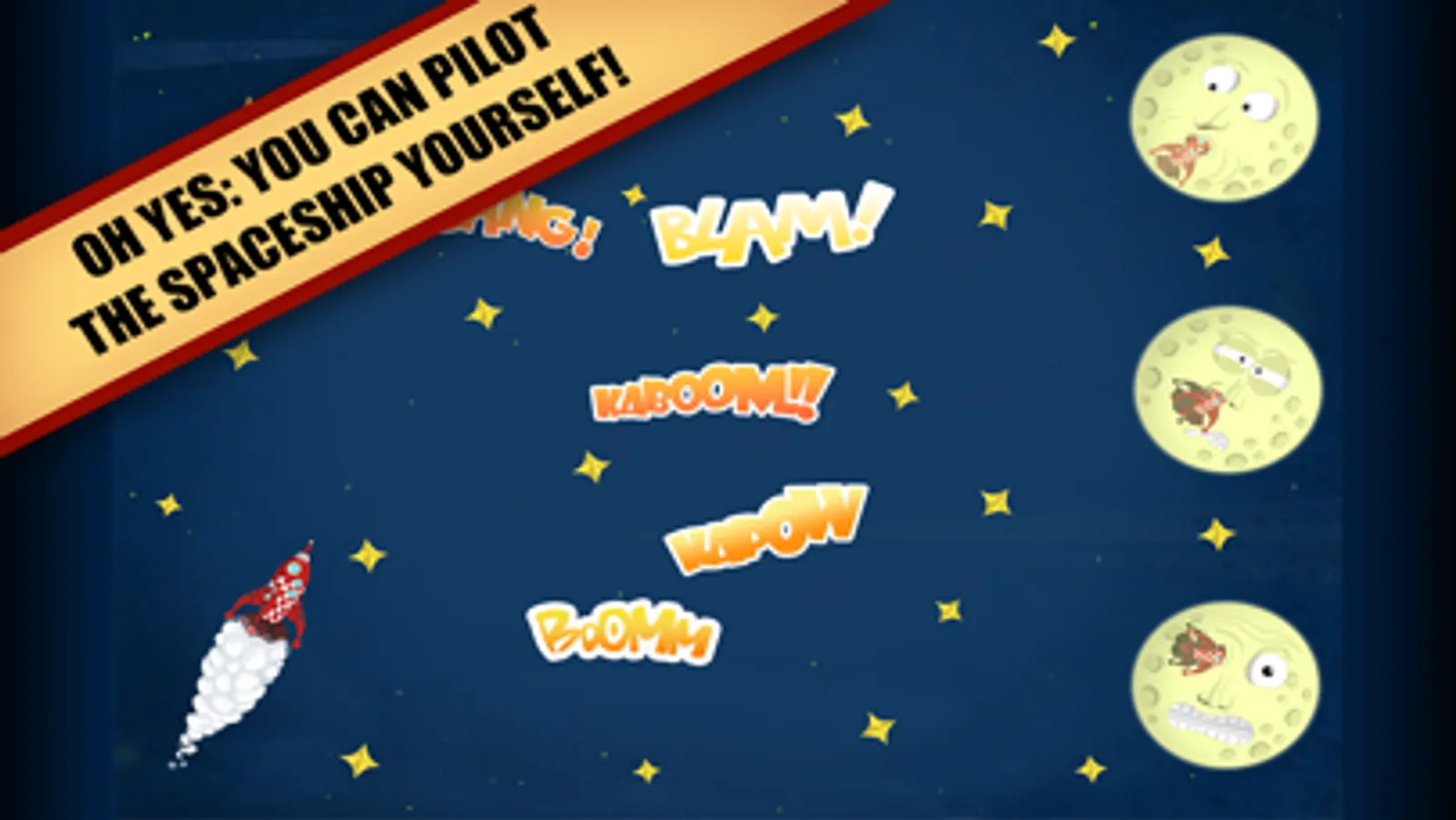 • Drive Doctor B’s spaceship towards the moon but...be careful the sky is full of meteorites!