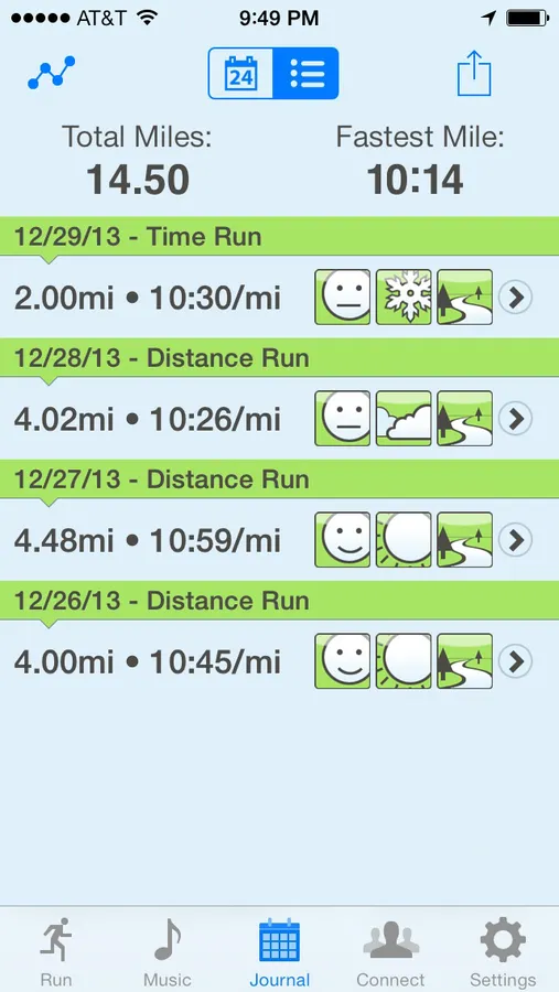 Some runs are better than others. Record what the weather was like, how you felt, and where you ran. And don’t forget to add a note. View your runs in either calendar or list view.