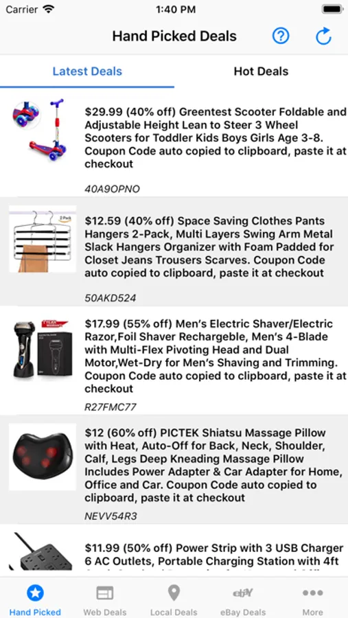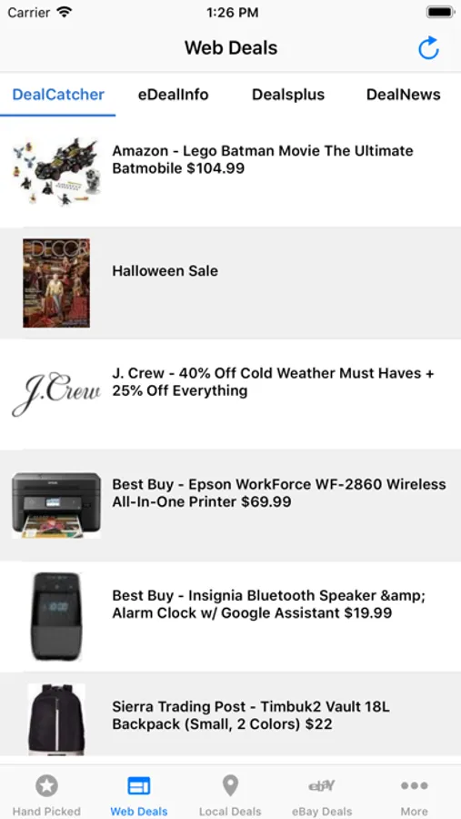 * Daily deals from popular deal sites