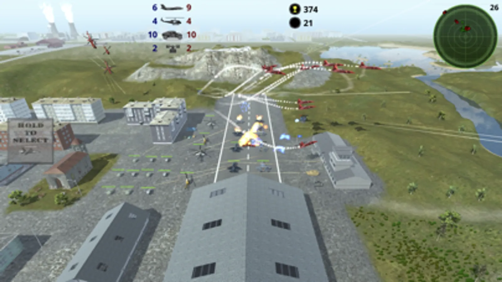 In some missions there are manufacturing of airplanes, helicopters and jeeps, you will have to occupy the enemy bases to destroy them all.