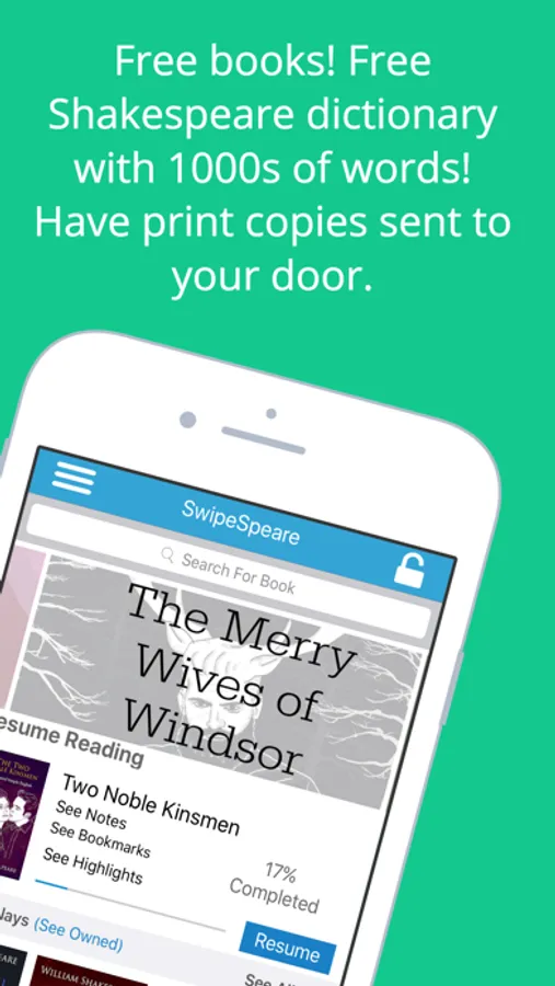 • Every Shakespeare play translated into modern English! (The original play is also included--you choose how you want to read it. Swipe your finger and you can easily toggle back and forth!)