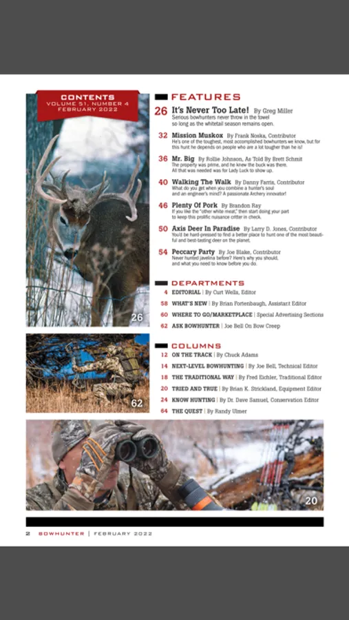 Bowhunter brings you expert advice from the most experienced and even legendary bowhunters. Each issue is filled with articles that aim to make you a better bowhunter by covering hunting tactics, the best gear, hands-on tips, and adventure destinations near and far. If you hunt big game with a bow and arrow, or plan to, this is your magazine.