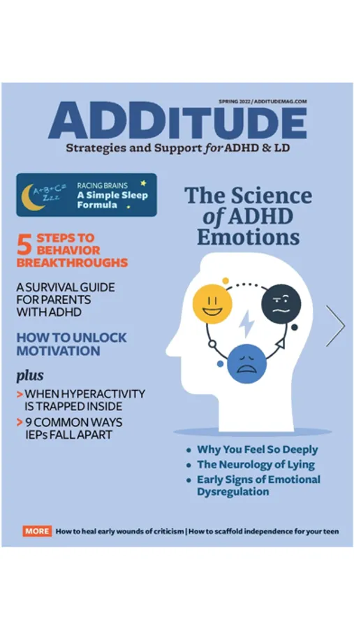 ADDitude magazine is the most trusted resource for families touched by ADHD and its related conditions. ADDitude offers advice and information about ADHD symptoms, medication, treatment, and diagnosis for adults with ADHD and those parenting children with the condition. ADDitude serves as a voice of inspiration to help people with ADHD find success at home, at school, and on the job.