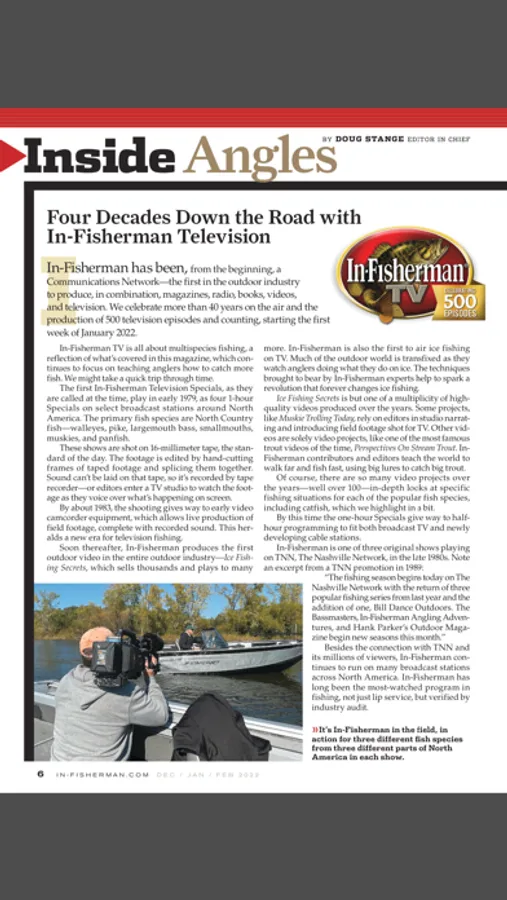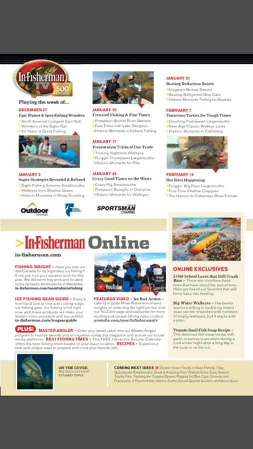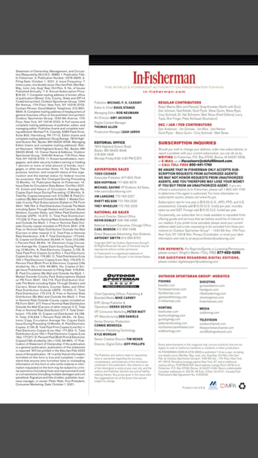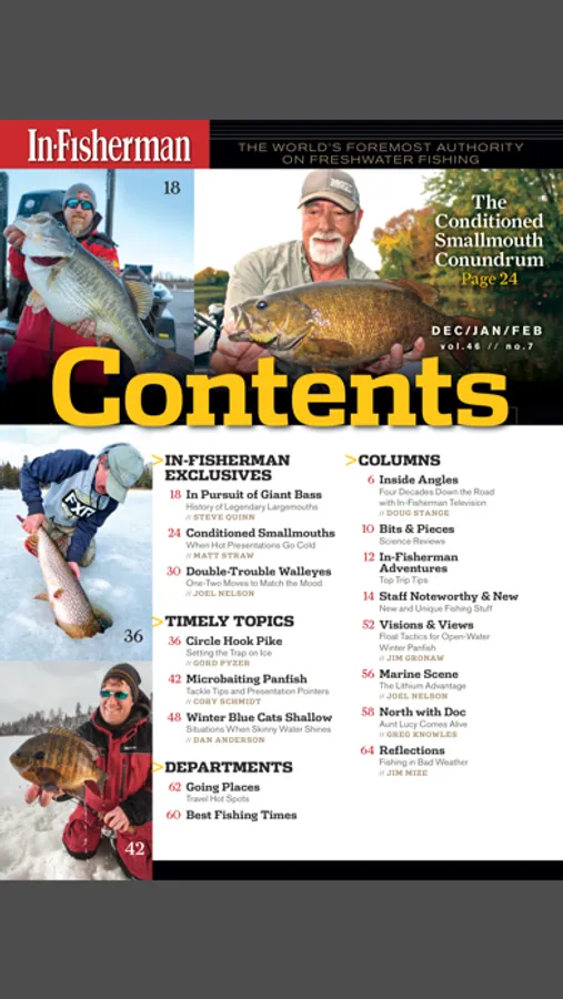 In-Fisherman magazine-the World's Foremost Authority on Freshwater Fishing-brings you exclusive fish-catching information on your favorite species: Largemouth Bass, Smallmouth Bass, Walleye, Crappies, Panfish, Pike and Muskies, Trout and Salmon, and more. In-Fisherman editors uncover angling secrets you won't find anywhere else. Plus, each issue reveals the latest in tackle and equipment, as well as North America's fishing hot spots. Science is a common thread running through each issue, helping anglers better understand fish and their environments and how it all relates to catching more and bigger fish.